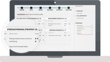 Comparta un espacio de trabajo estructurado para crear, decidir y actuar como un equipo en una mentalidad orientada a resultados. Implemente un método consistente y ágil para la gestión de estrategias y proyectos, accesible para todos. Formalice sus decisiones y planes de acción, y haga la comunicación más fácil.