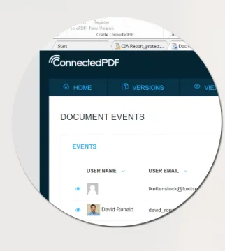 Seguridad de ConnectedPDF: Otorgue y revoque el acceso a los documentos. Administración de documentos en ConnectedPDF: realice un seguimiento para ver quién abre el documento y qué hace, y notifique a los lectores sobre las nuevas actualizaciones.