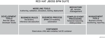 Las 3 tecnologías clave, BPM, BRM y procesamiento de eventos complejos (CEP), se combinan para automatizar una amplia gama de procesos empresariales al completo. JBoss BPM Suite hace que la lógica empresarial sea visible y comprensible para las empresas y usuarios de TI, lo que les impulsa a colaborar y gestionar el cambio de forma eficaz.