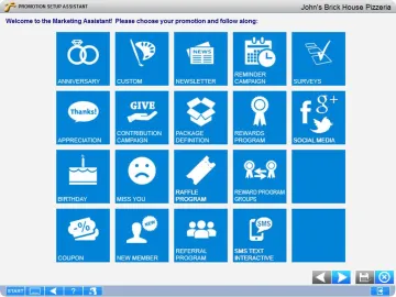 Obtiene nuestro administrador de marketing intuitivo. Elija entre numerosas promociones listas para usar y personalícelas para sus necesidades específicas. Administre las comunicaciones de correo electrónico y sms y explote los datos de sus clientes con facilidad.