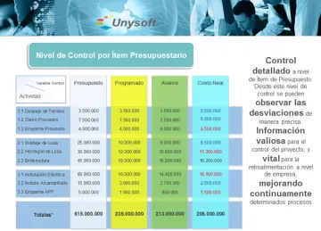 Unysoft es un software de construcción especializado en el control presupuestario, administrativo y contable de empresas de ingeniería, obras civiles y construcción. Se trata de una solución web modular que permite conectar todas las áreas del negocio —desde la planificación de obras hasta la facturación electrónica— en una sola plataforma.